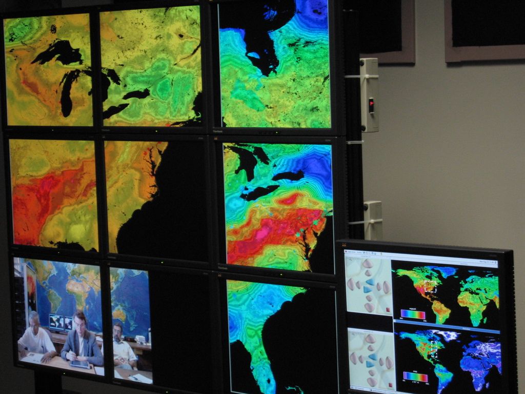 - On August 8, 2005, a demo of "21st Century National-Scale Team Science", involving UCSD and GSFC linked using OptIPuter technologies over a 10-Gbps lambda across the NLR and DRAGON networks, was presented in GSFC's SVS to NASA Associate Administrator of Science Alphonso Diaz and ~30 other attendees. The demo's Program Guide/Agenda (pdf, 564KB) is provided. A news release prepared by UCSD about the demo is provided. A partially representative set of GSFC photos taken during the demo is provided. A montage of amateur photos (pdf, 11.1MB) taken during the demo is provided.