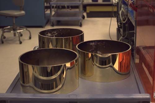 Sections of circular arc are cut from flat aluminum sheets. With the present 2-stage design, the inner and outer radii of curvature are the same for each flat foils of a particular stage. Different arc lengths of the same circular annulus (one of each stage) are cut in order to make mirrors of different nesting radii. These foils are treated and cleaned to remove surface contamination as well as boundary distortion.